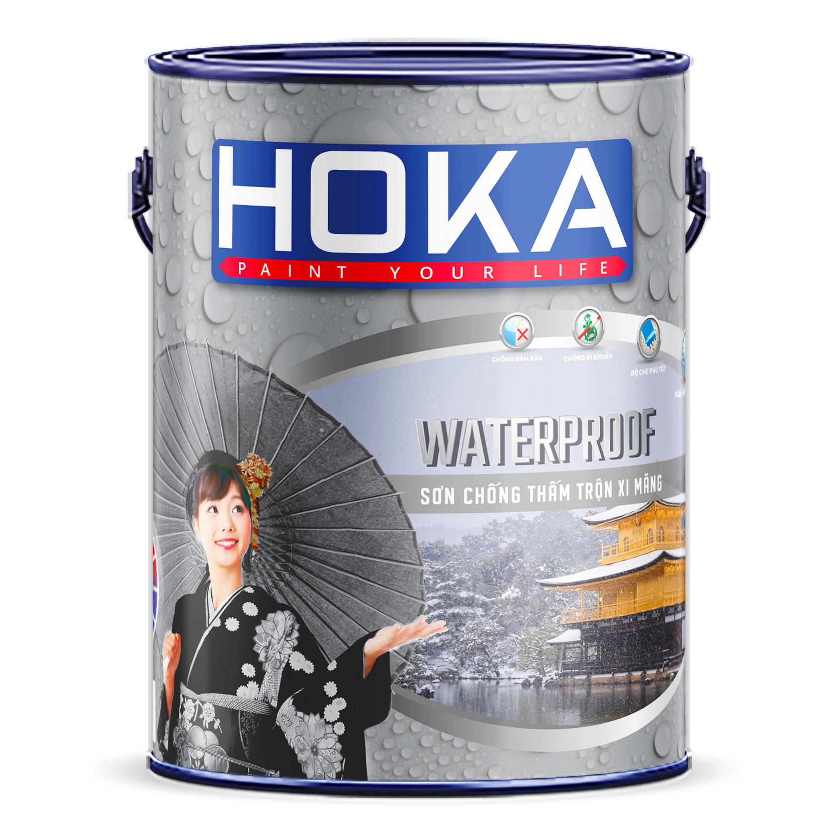 HOKA Waterproof – Sơn chống thấm trộn xi măng là hệ sơn chống thấm hai thành phần (sơn + xi măng) tạo lớp phủ xi măng biến tính polymer bám dính rất tốt trên nền bê tông, vữa xi măng.